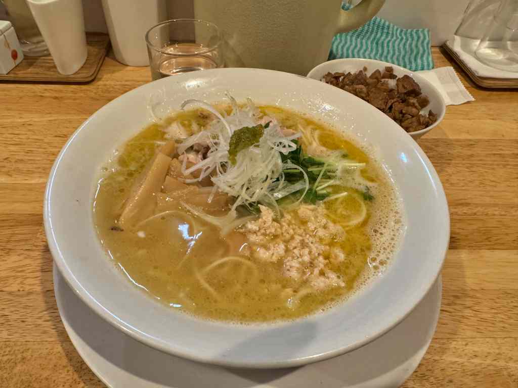 トリの旨みのスープとストレート細麺の相性もよく、塩味もほどよく柚子胡椒がアクセントになっていて、とても美味しかったです。