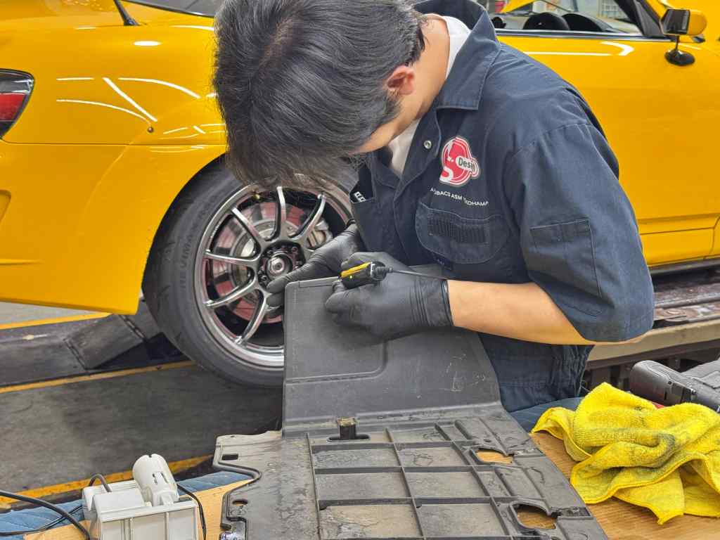 残りのインナーフェンダーの交換やハードトップ装着の作業は、12日(水)の車検までに終わらせてくれることになりました。