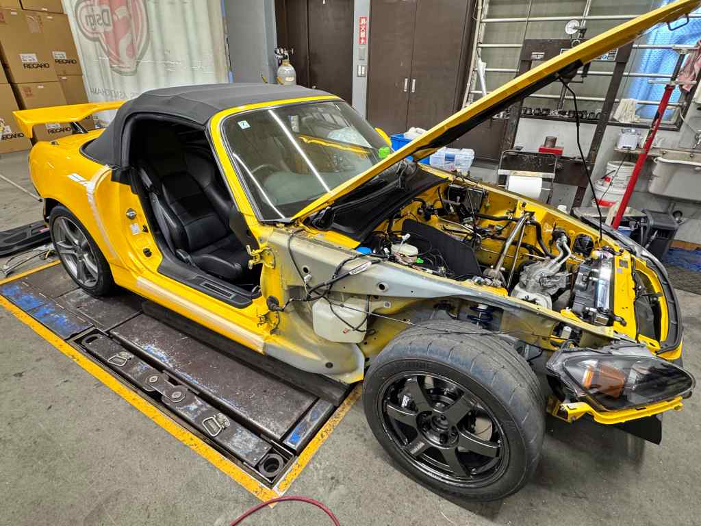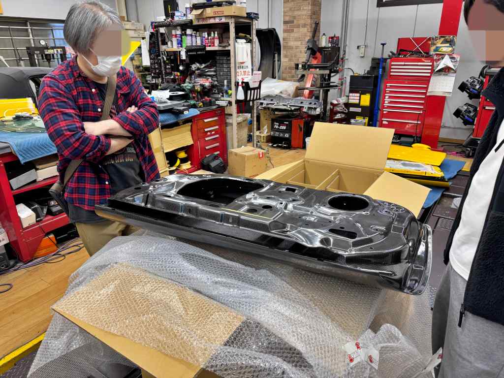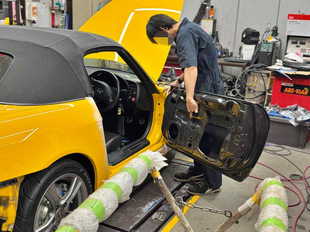 カーボンドアの装着作業が始まったので、見学させてもらいました。