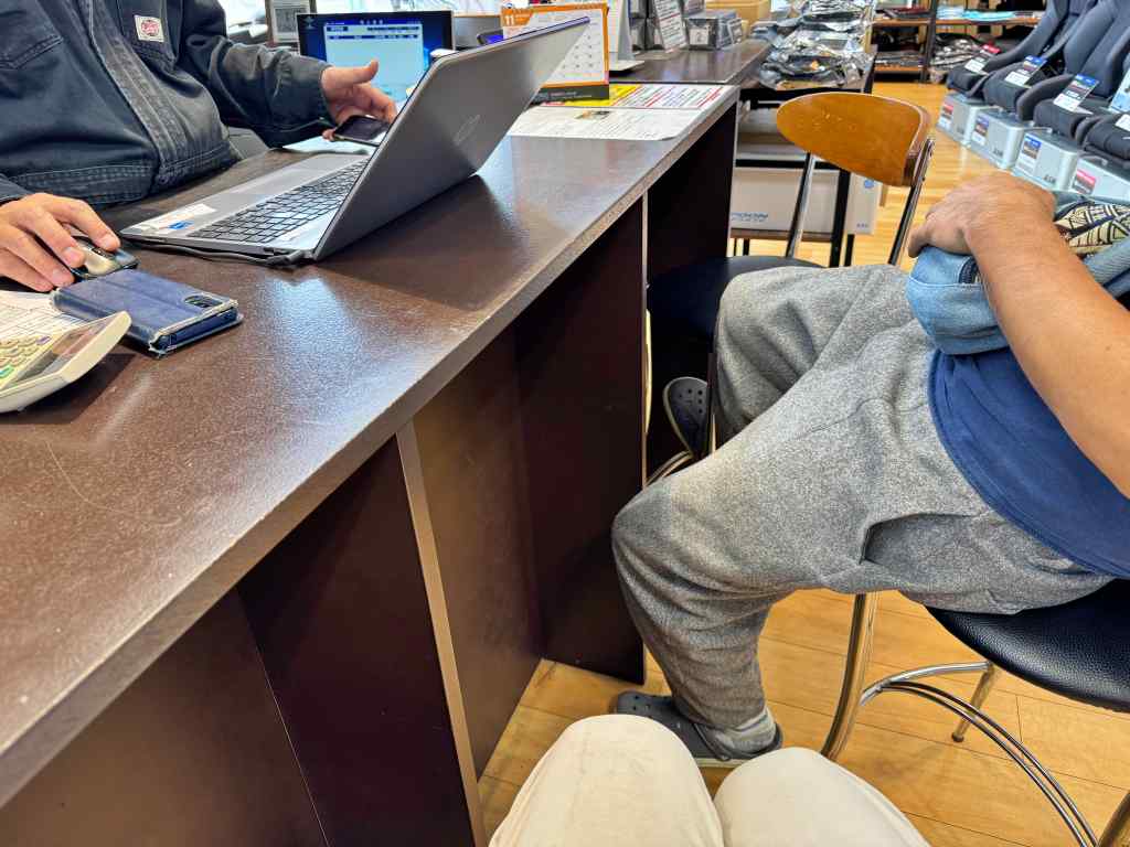 到着するとM田さんはすでにワンちゃんでのランチを終えて、M島店長と車の運搬日について相談しておりました。