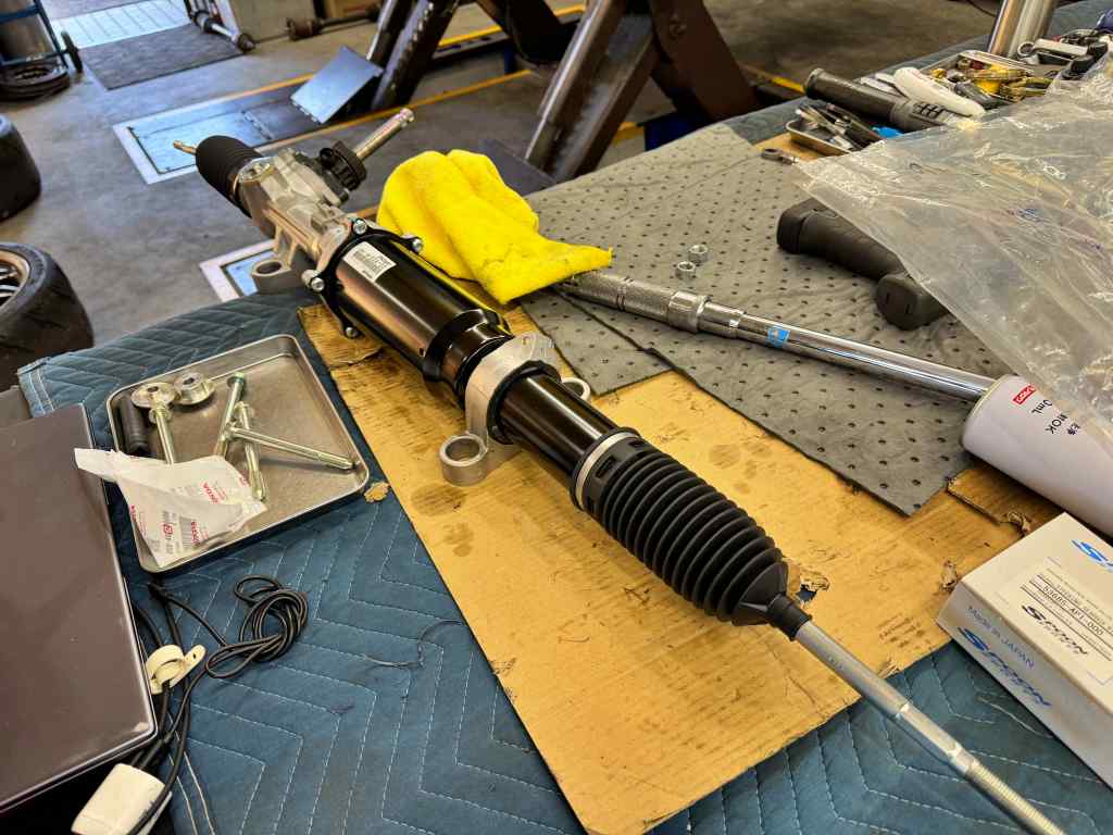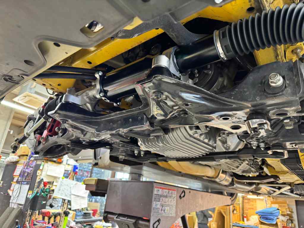 ステアリングギアボックスは、無事装着となりましたが、一部パーツがないとのことで、アライメント調整は後日となりました。