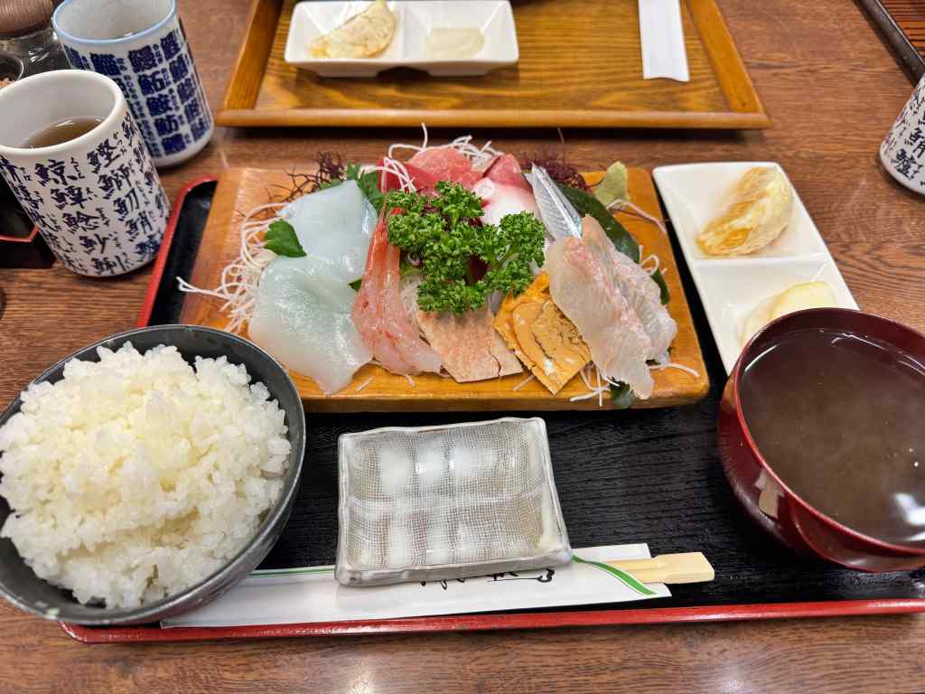 今回は、なんとか売り切れずに残っていた刺身盛り合わせ定食を注文。