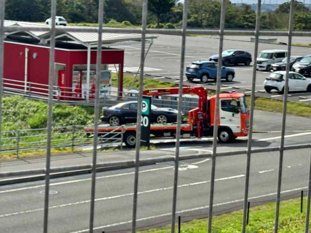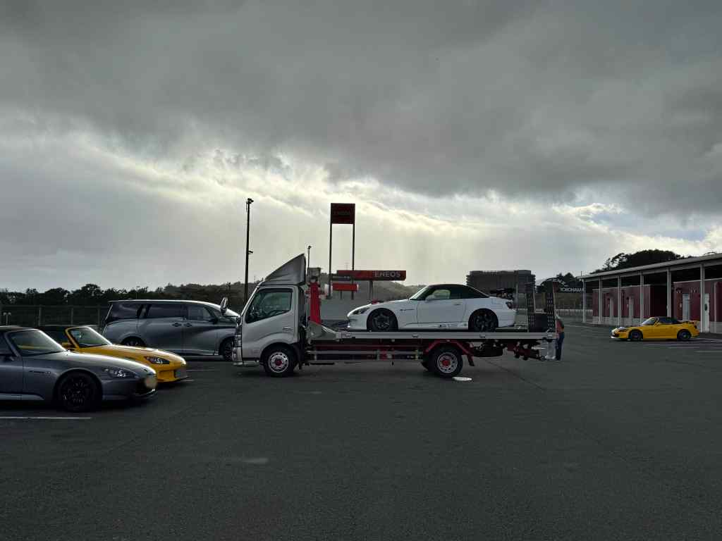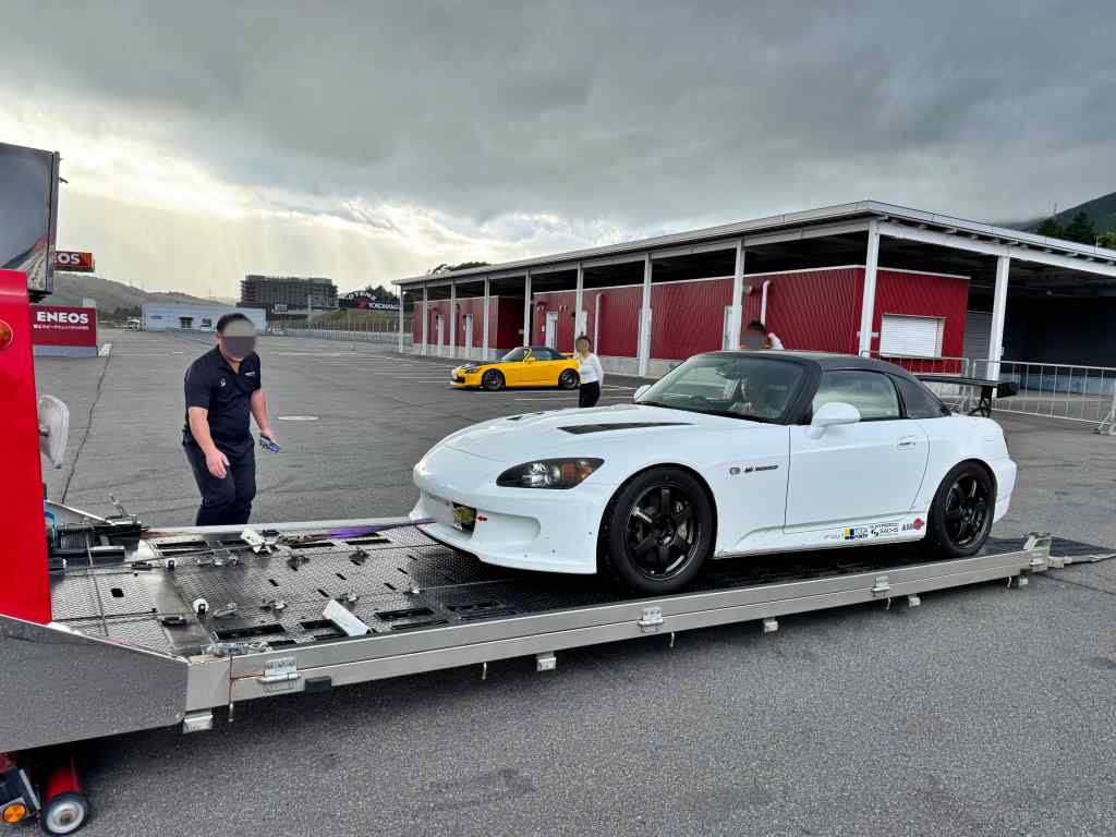 見覚えのあるS2000もエンジンブローしたようで、積載車を待っておりました。