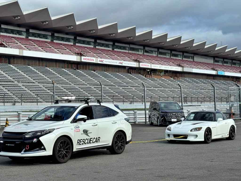 走行枠終了後、M田さん号はマーシャルカーに牽引されて戻ってきました。