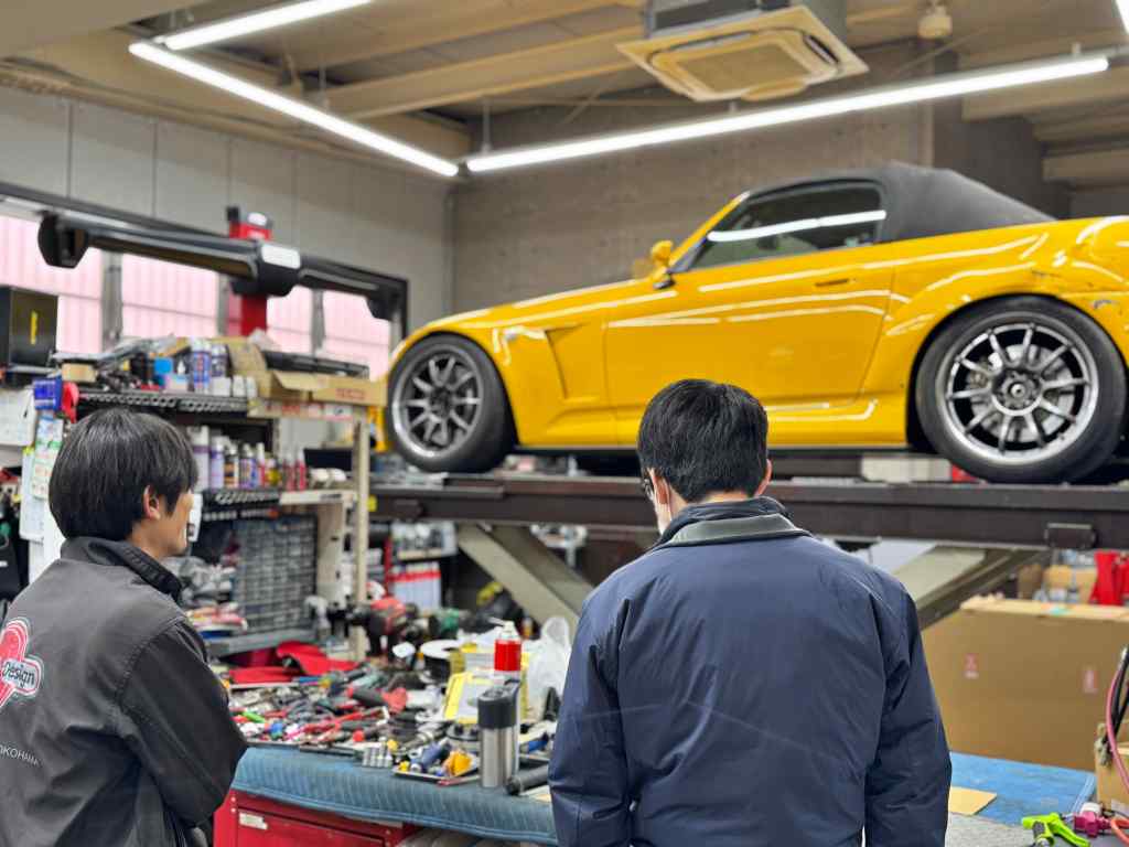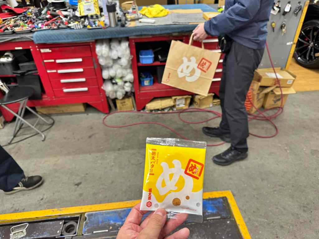 メンテナンスを終えた車の引き取りに、テツさんがご来店。