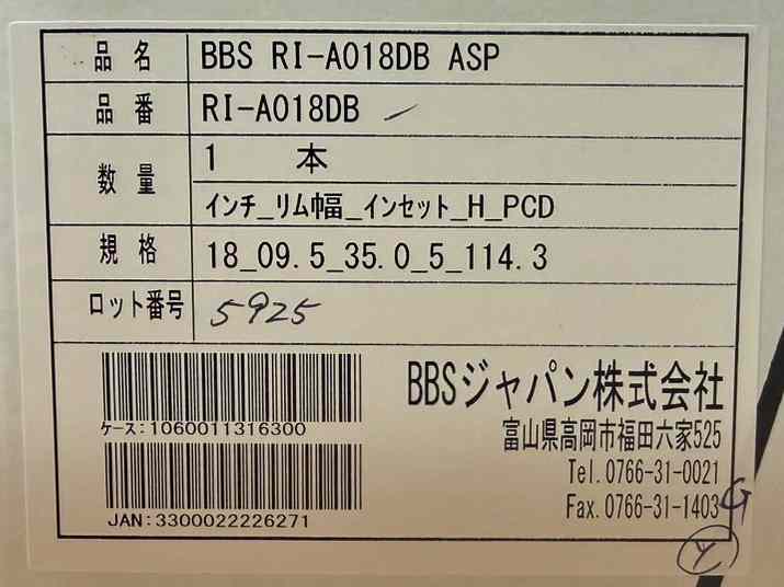 前回、購入したRI-Aは、18×9.5+50でしたが、今回は、18×9.5+35にしてみました。